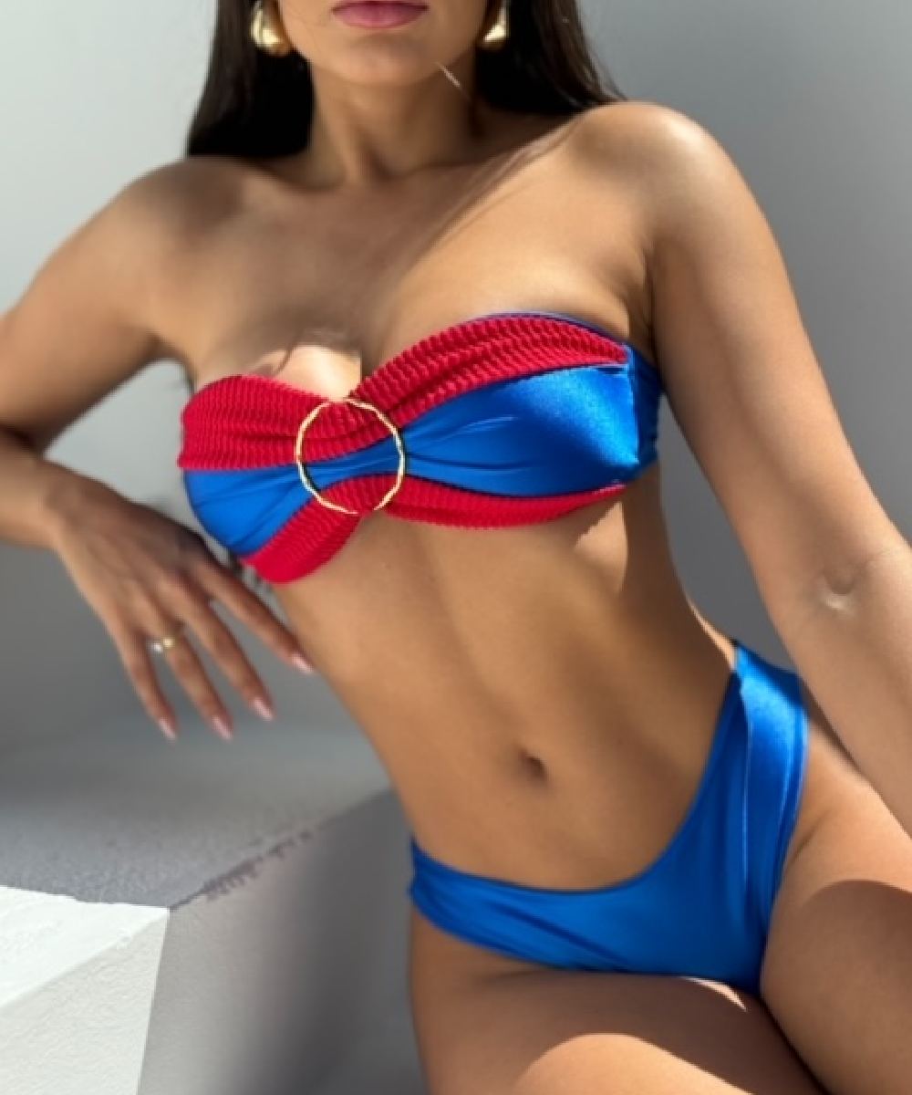 O biquíni tomara que caia com Fivela é elegante, sofisticado e nunca sai de moda. Ele está em alta nas tendências desse verão.